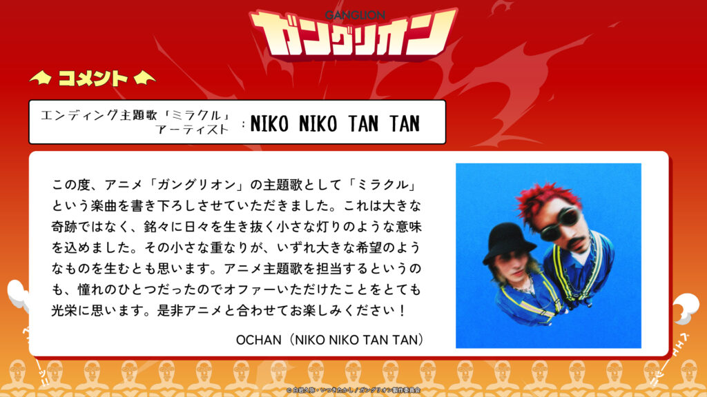 エンディング主題歌は NIKO NIKO TAN TANさんの歌う「ミラクル」に決定!コメントも到着!