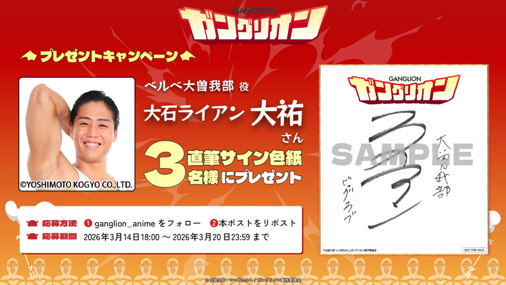 公式Xにて、ベルベ大曽我部役 大石ライアン大祐さんのサイン入り色紙プレゼントキャンペーンを開始しました!